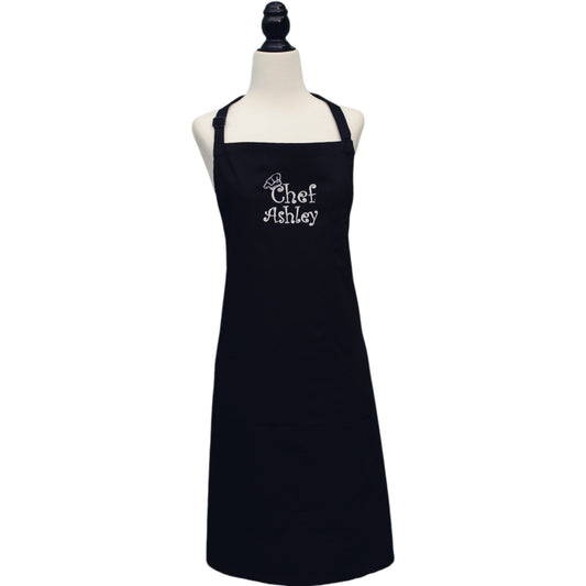 Personalized Embroidered Chef Apron with Any Name, Custom Black Apron, Great Gift Father Day, Mother Day, Cooking, Baking, Grilling Apron