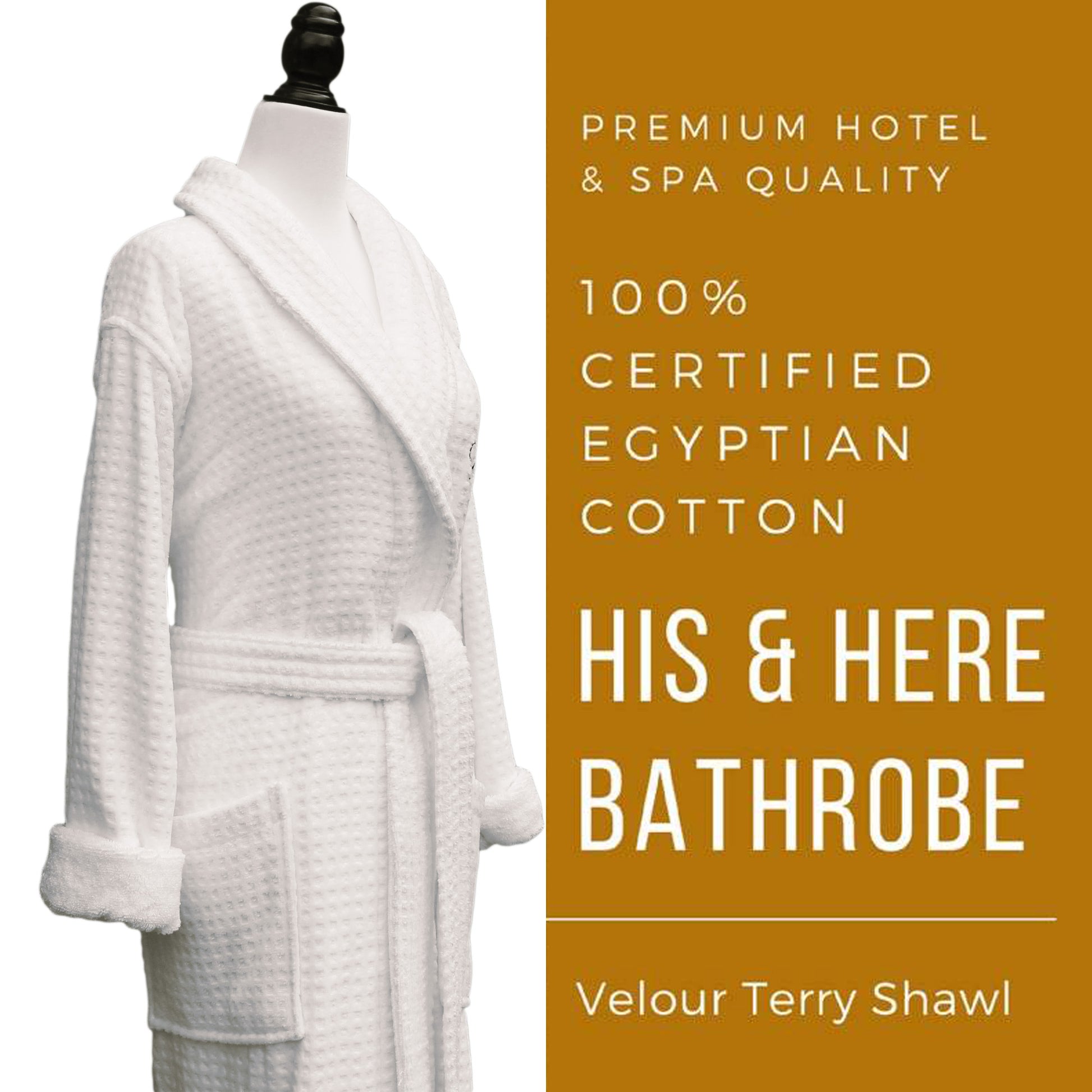 Bathrobe 100% Certified Egyptian Cotton Premium Hotel Spa White Velour Terry Shawl Super Absorbent 420GSM Engagement, Husband Wife Gift