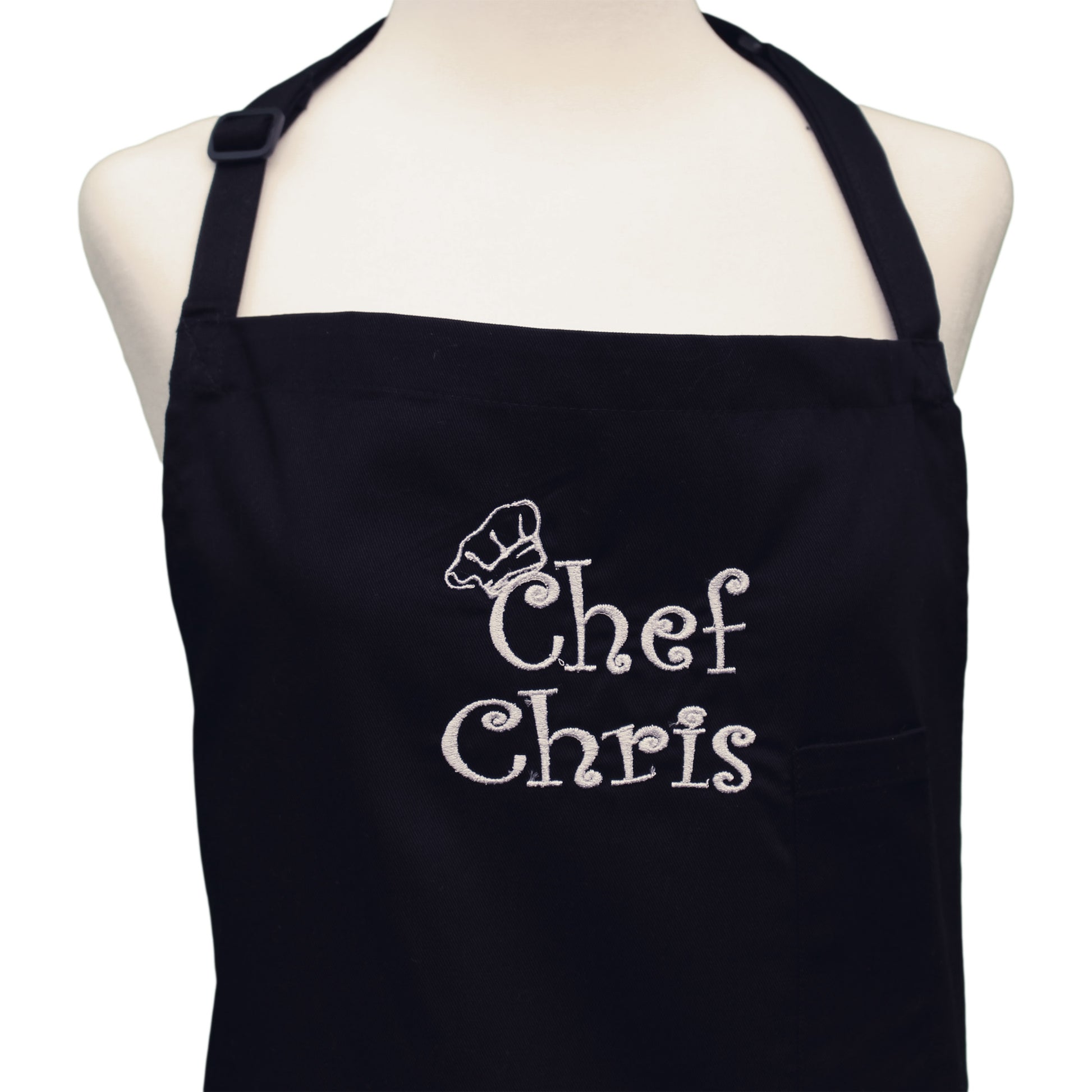 Personalized Embroidered Chef Apron with Any Name, Custom Black Apron, Great Gift Father Day, Mother Day, Cooking, Baking, Grilling Apron